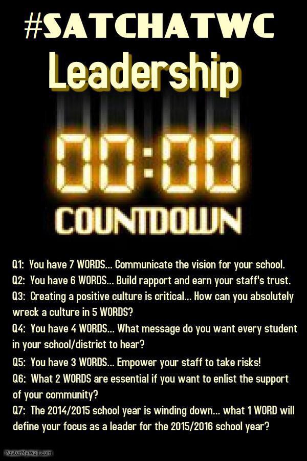 Saturday morning is not a time for me to sleep in. I set my alarm for 6:45 so that I can rise, make coffee and get ready for my favorite twitter chat #satchatwc. It is a chat for all educational leaders wc stands for West Coast for those of us who can't make #satchat. It begins at 7:30 am and it inspires many of the blog posts I write. This morning we had 7 questions and the responses were enlightening, humbling, thought provoking and gut wrenching. There were over 2000 tweets in the hour which is pretty amazing. CLICK HERE to read some of the tweets.